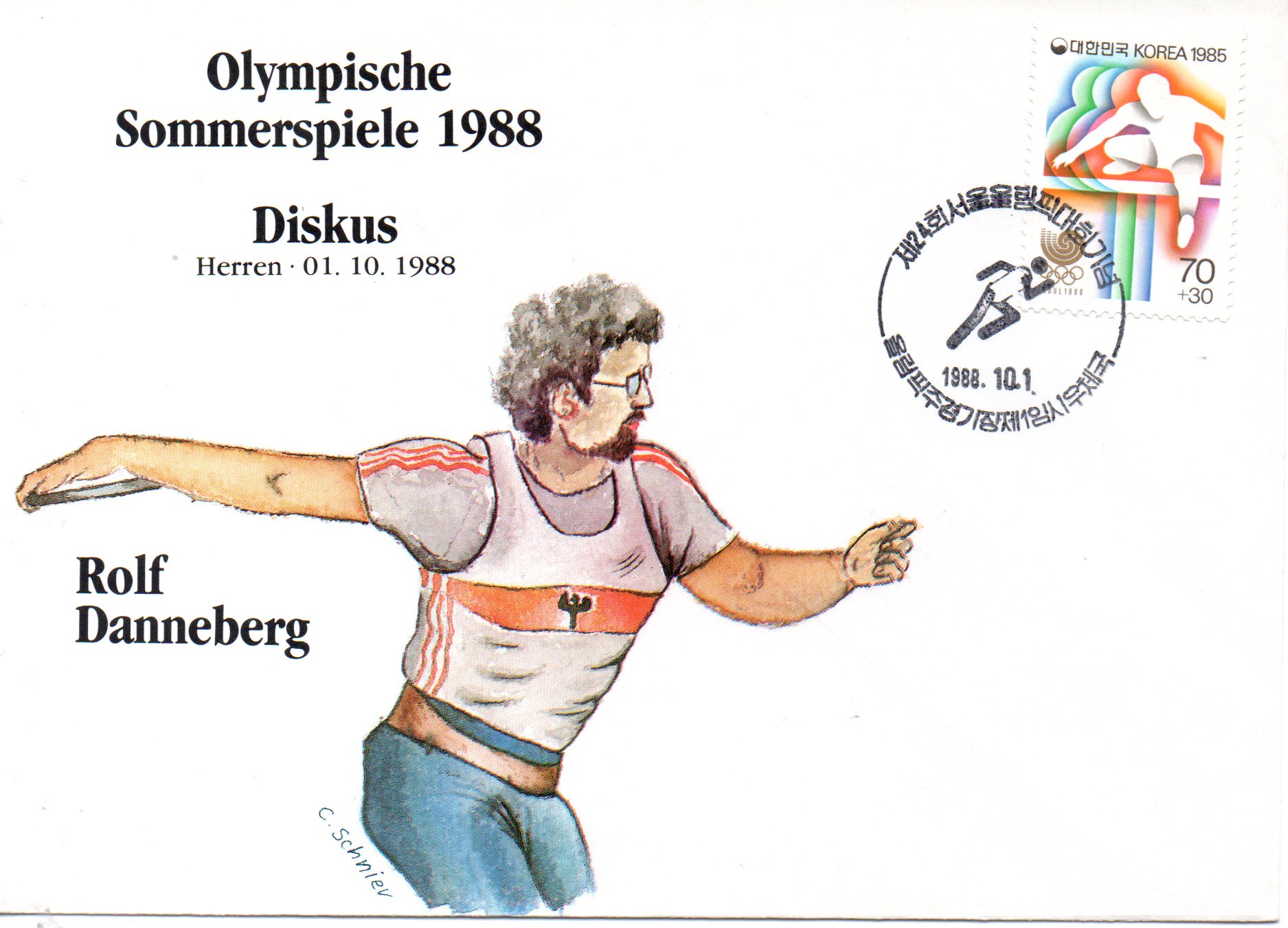 O Jižní Korea, OH 1988 Seoul, PR 1.10.1988 atletika, diskař Rolf Danneberg (bronzová medaile), zn. 70+30 W atletika Mi 1410, kvalita555