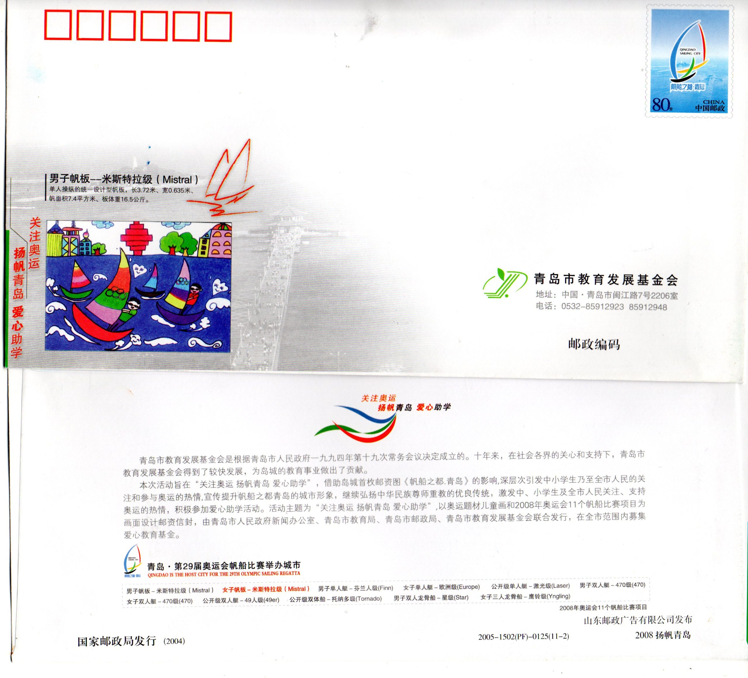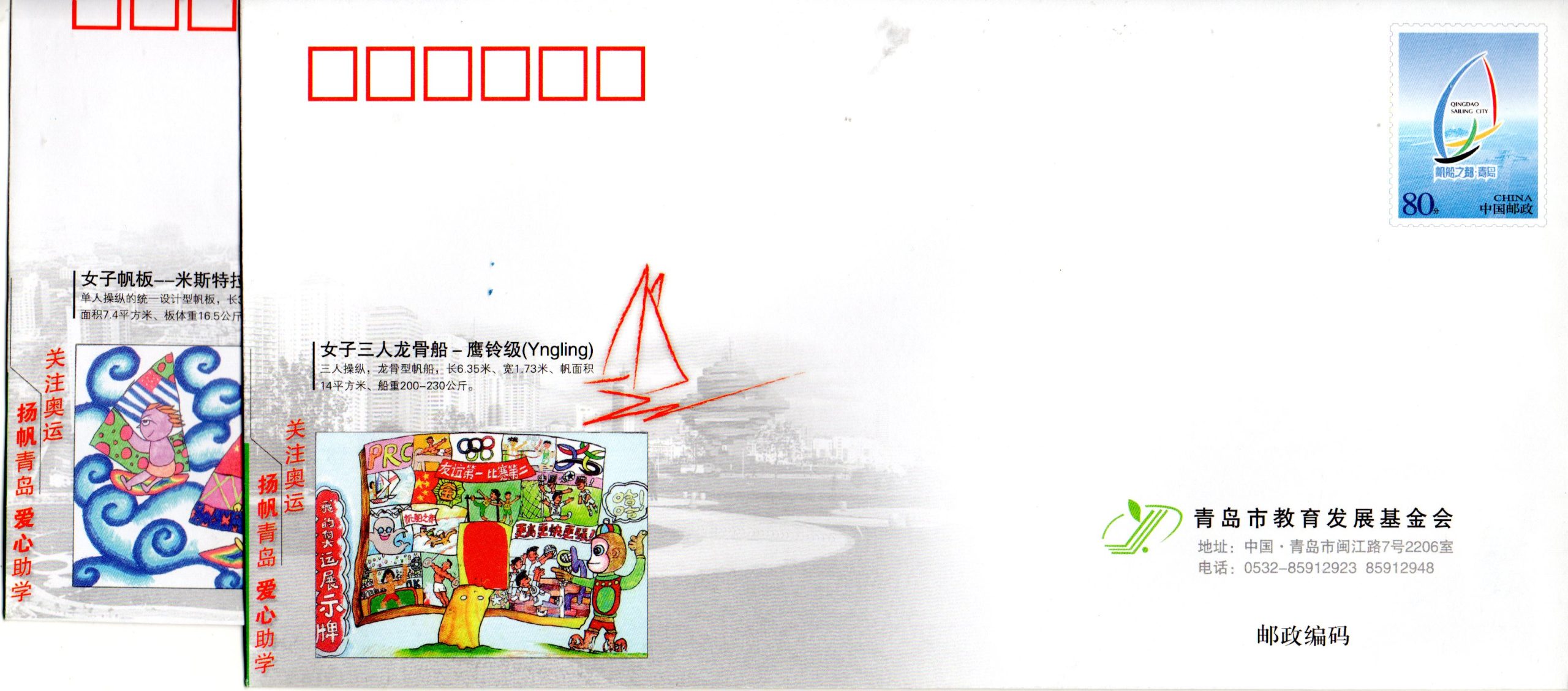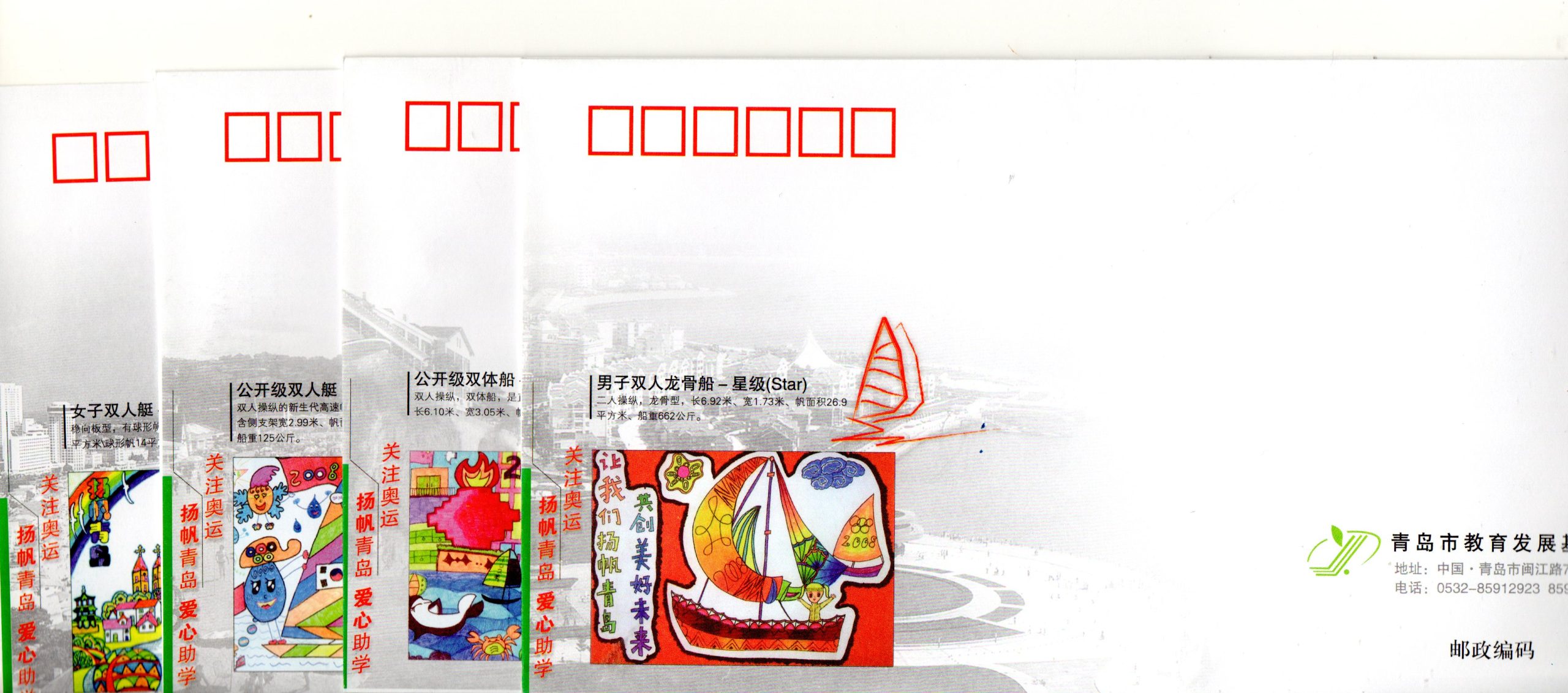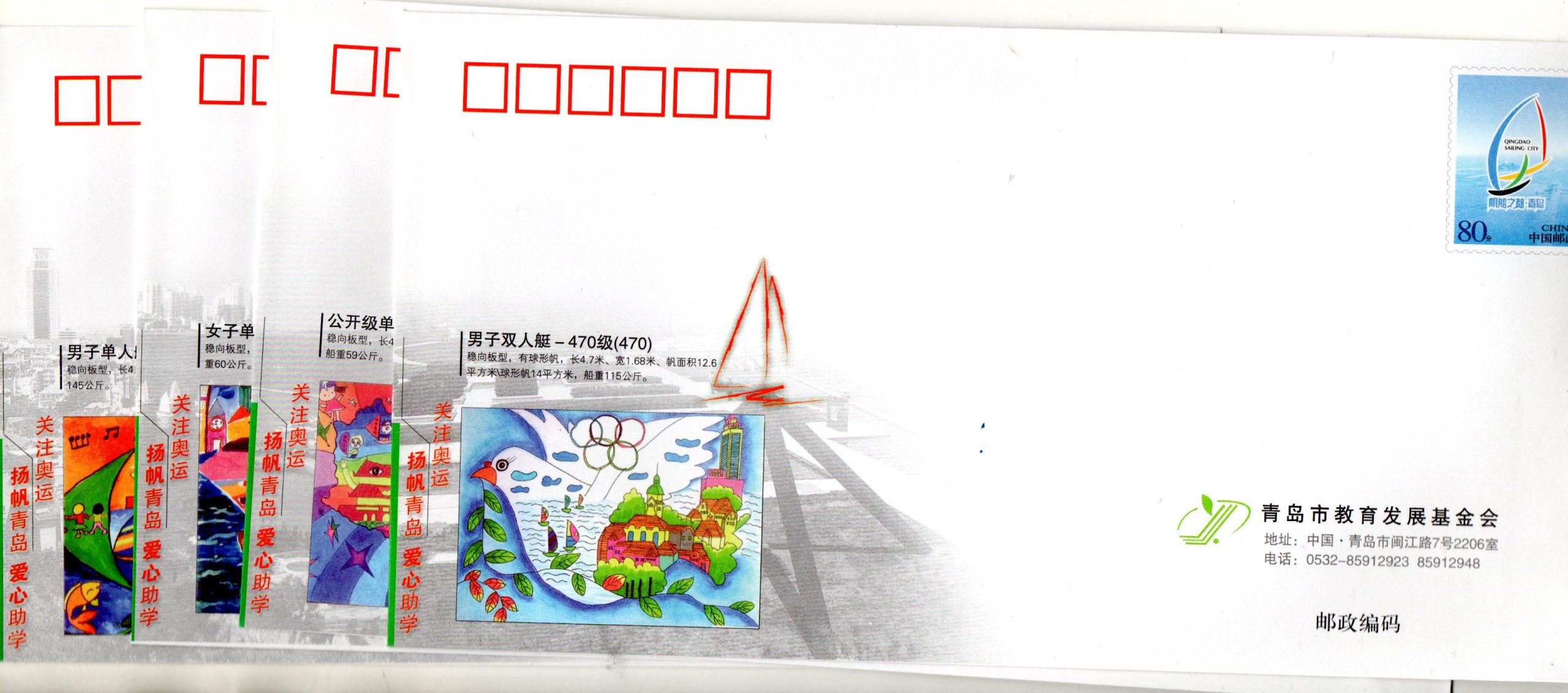 COB 11 ks Čína, OH 2008 Peking, kompletní sada 11 ks celinových obálek QINGDAO SAILING CITY, jachting všechny trídy, nepoužitá, limitní série, velmi hledané, LUX kvalita
