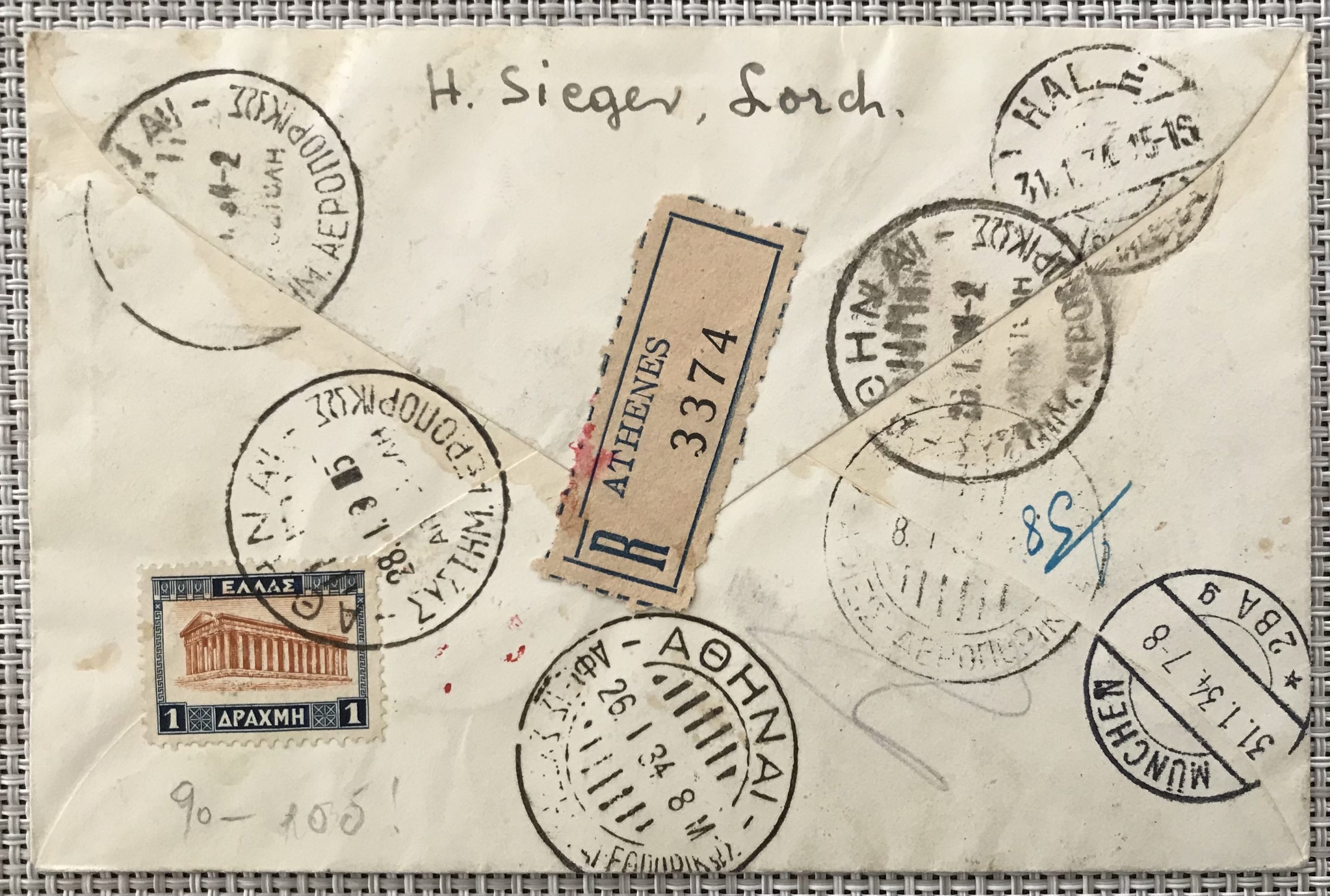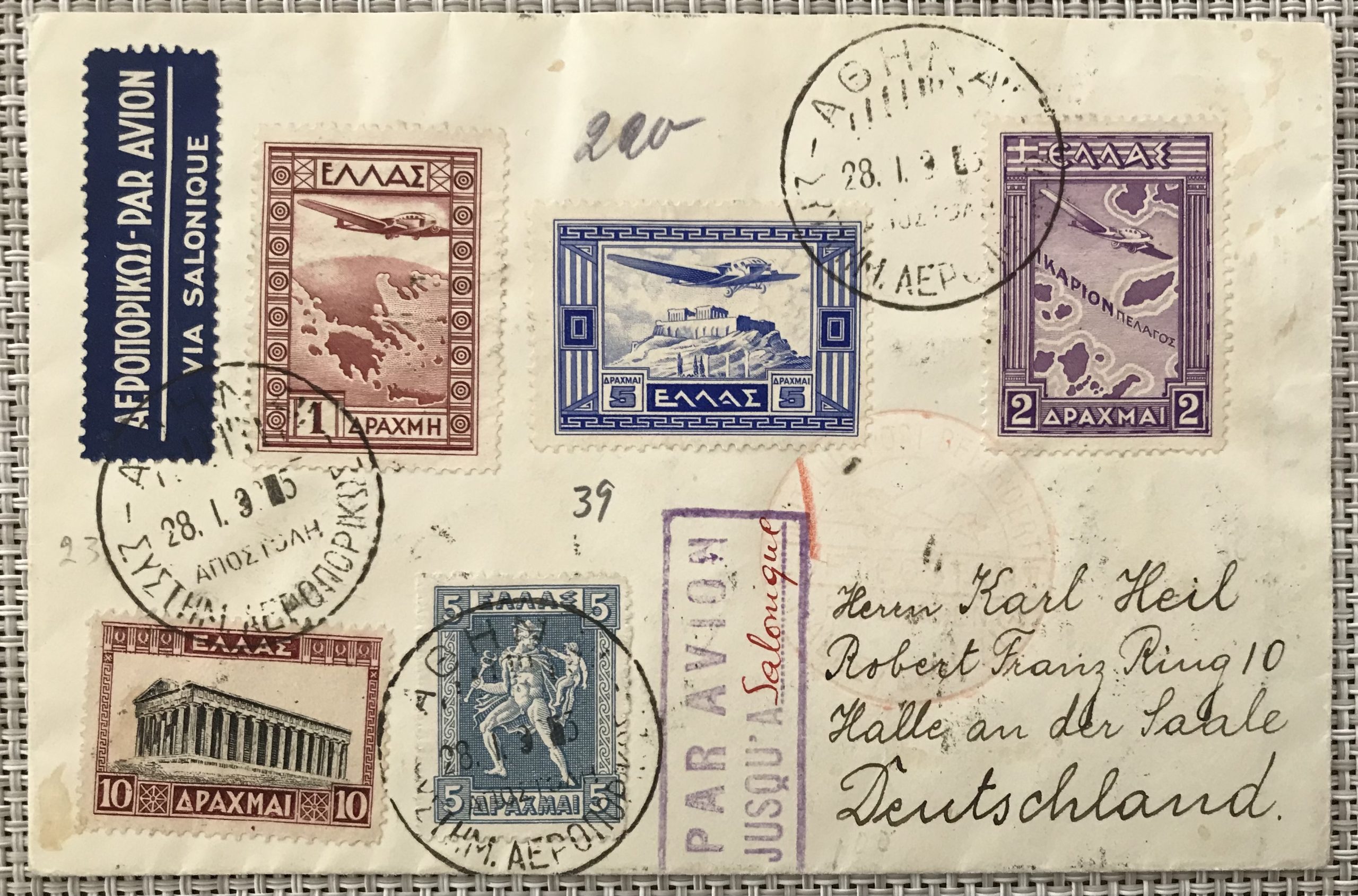 O Řecko, R+aero dopis z Athén do Halle – průchozí razítka, kvalita 445