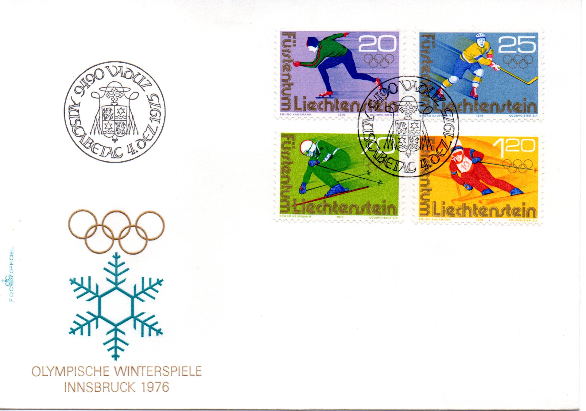 FDC Liechtenstein ZOH 1976 Innsbruck, PR 4.12.1975 VADUZ AUSGABETAG, série 4 olymp.známek 1976 Mi 635-8, kvalita 555